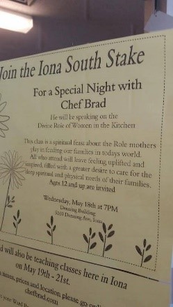 hef Brad] will be speaking on… The Divine Role of Women in the Kitchen.”